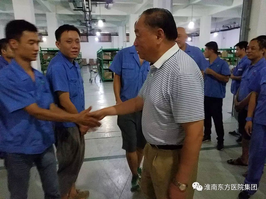 “大計劃”第三天,是進出貨的高峰期,也是倉儲部最為忙碌的一天。當天下午,室外溫度高達41度,醫院集團董事長江鴻方,集團董事、總院院長王多為,集團董事、總院黨委書記、康寶藥業董事長朱興林一行冒著烈日,來到公司倉儲部,與一線員工親切握手,并把慰問物品和慰問金送到員工手中,讓大家在悶熱的環境里享受絲絲的清涼。