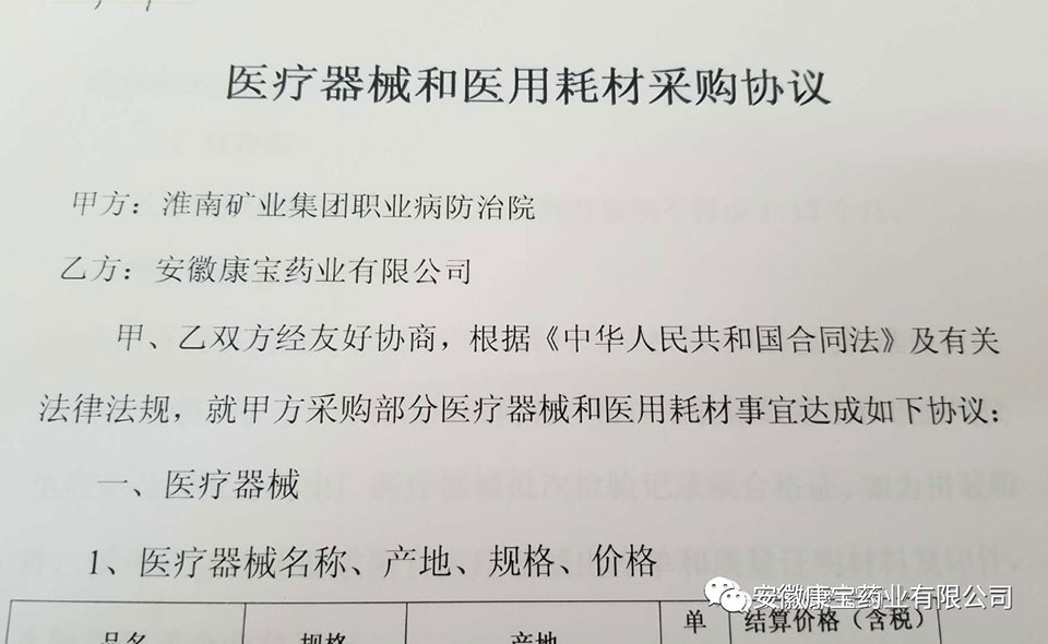 8月23日,康寶藥業與淮南礦業(集團)職業病防治院簽訂醫用耗材采購協議。