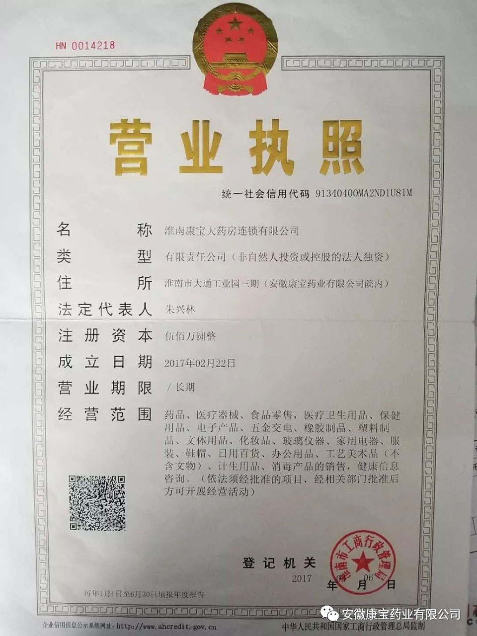 2月22日,安徽康寶藥業有限公司順利領取康寶連鎖藥店營業執照,標志著公司下屬淮南康寶大藥房連鎖有限公司正式成立。