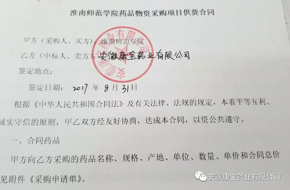 8月31日,康寶藥業從數十家公司中脫穎而出,成功中標成為淮南師范學院醫療用品供應商。