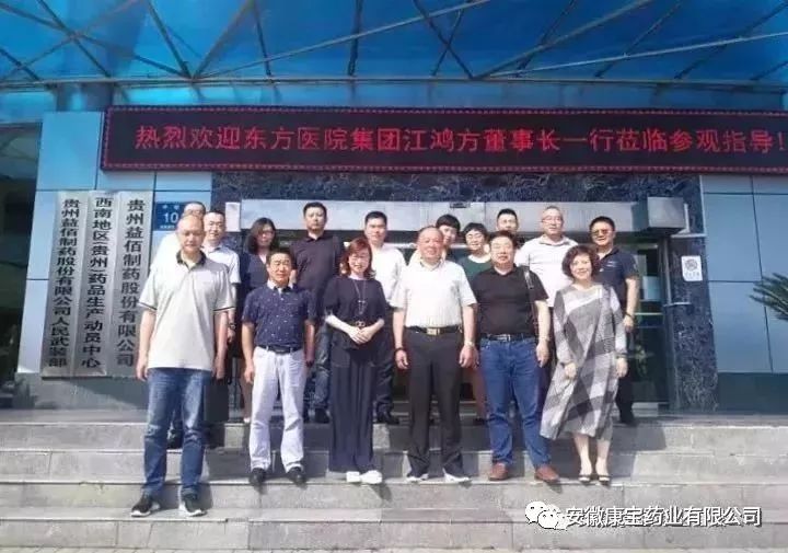 7月18日-20日,江鴻方董事長、朱興林書記及康寶藥業主要負責同志一行前往貴州益佰制藥股份有限公司參觀交流。江鴻方董事長一行受到了貴州益佰銷售總裁田曉紅的熱情接待。
