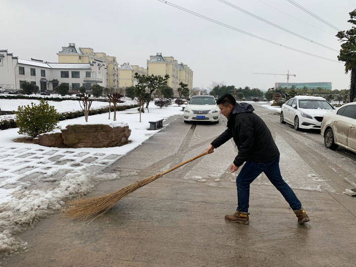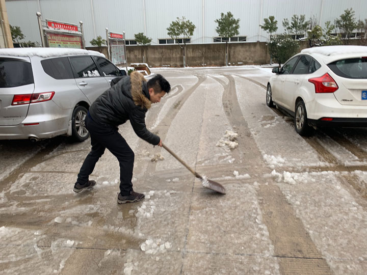 公司組織員工開展積雪清掃活動(dòng),大家不畏嚴(yán)寒,積極參加,紛紛拿起鐵鍬和掃帚,開始清掃廠區(qū)內(nèi)的積雪。整個(gè)掃雪過程中,大家配合默契,干的熱火朝天,不亦樂乎,忙碌的身影構(gòu)成了一道亮麗的風(fēng)景線。