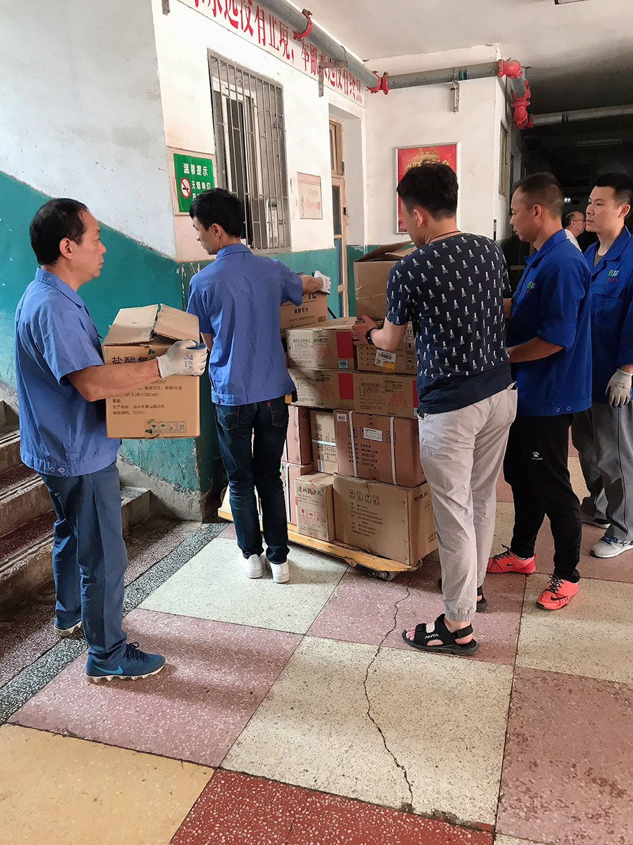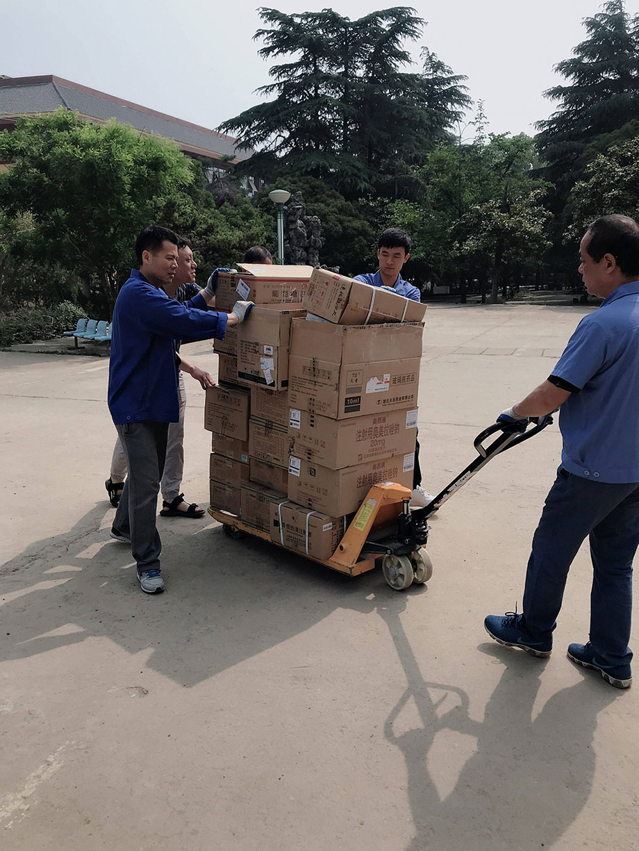 每次藥品全部運送到藥材科以后,大家還要和對方老師及時核對藥品,確保藥品的質量、數量、效期、產地、品名、規格等,確認沒有問題才算是配送成功,看著同事們汗流浹背的樣子,真心地為大家點個贊!