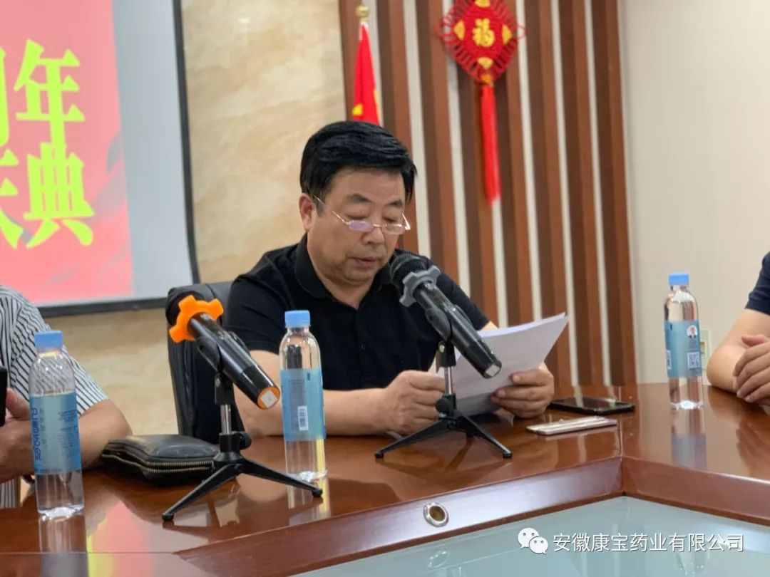 2019年9月10日下午,淮南東方醫院集團全資子公司康寶藥業在公司會議中心舉行隆重而簡樸的五周年慶典活動。東方醫院集團黨委書記、董事長江鴻方,集團董事、康寶藥業董事長朱興林出席了慶典。慶典由朱興林書記主持。